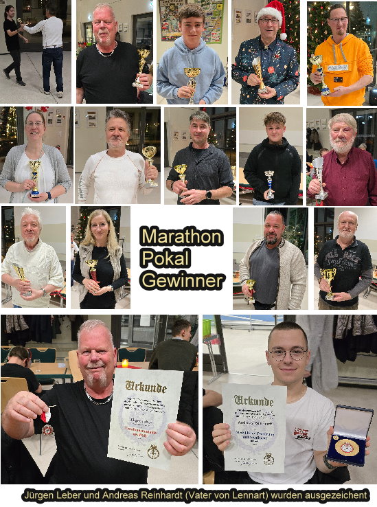 eine fette Ente oder einen anderen Preis mit nach Hause nehmen. Spaß gab es dann noch bei einer Weihnachtsüberraschungsverlosung! Natürlich wurde dieser Abend auch genutzt, um die Pokale für das Marathonschießen zu übergeben und zwei Auszeichnungen vorzunehmen.